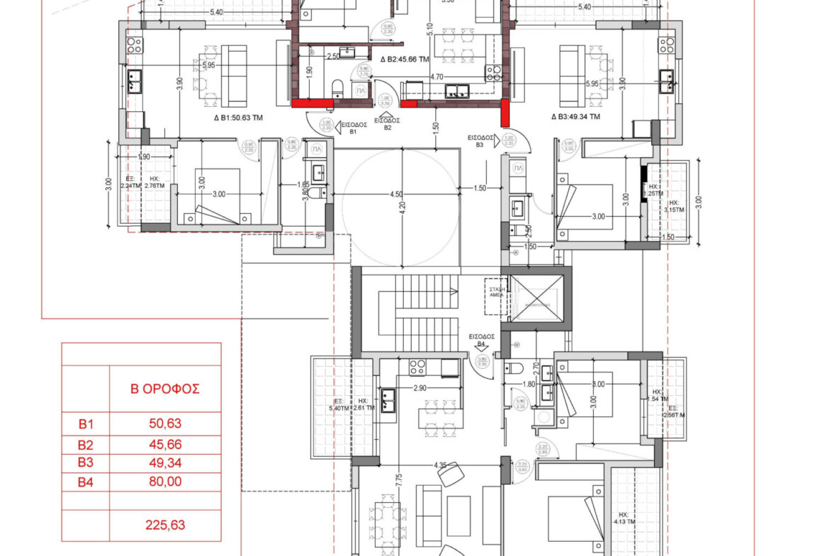 Το διαμέρισμα Β2 χαρακτηρίζεται από κομψότητα και πρακτικότητα, με άριστη εκμετάλλευση κάθε τετραγωνικού.
