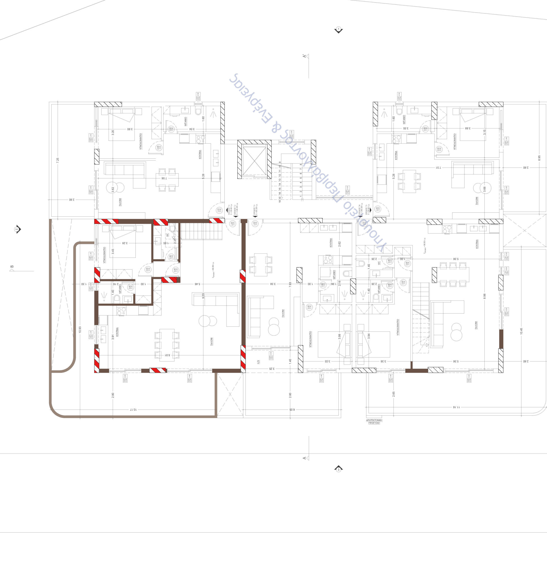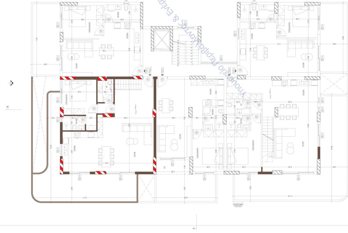 • Ενιαίος χώρος σαλονιού – κουζίνας (~35 τ.μ.) με πρόσβαση σε εξώστη πρόσοψης